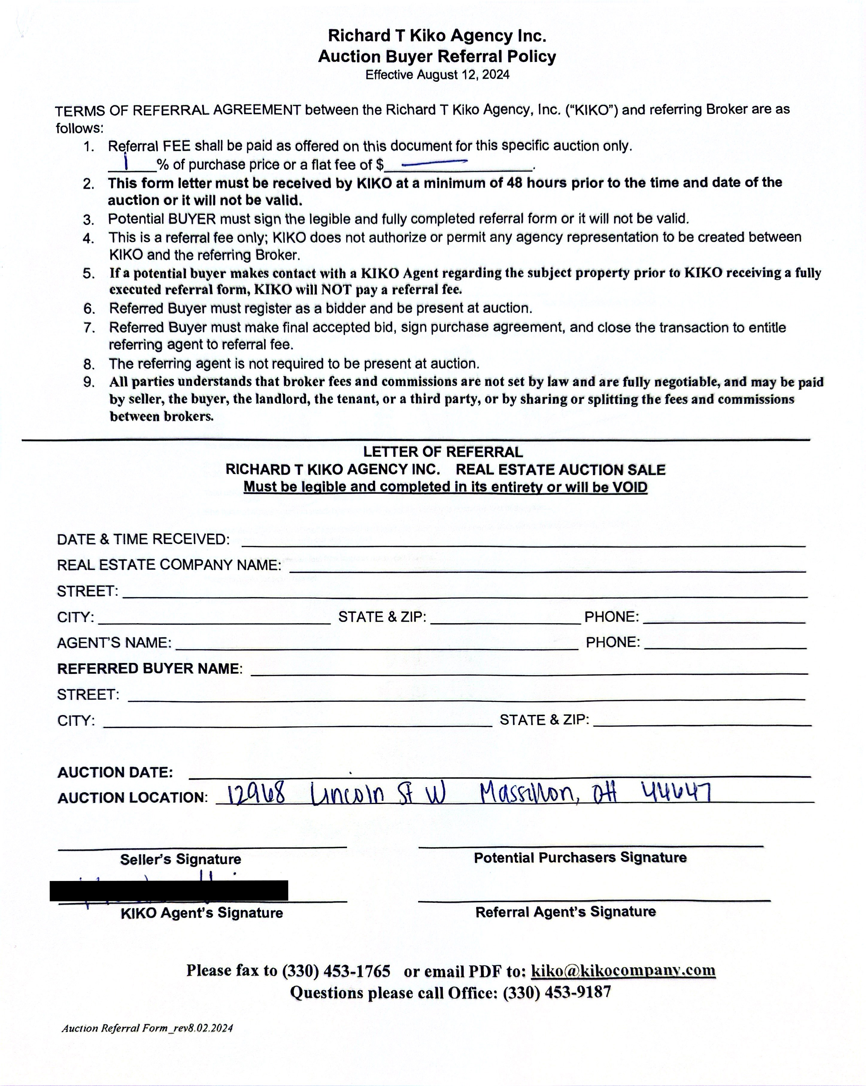 10% down auction day, balance due at closing. A 10% buyer’s premium will be added to the highest bid to establish the purchase price. Any desired inspections must be made prior to bidding. All information contained herein was derived from sources believed to be correct. Information is believed to be accurate but not guaranteed.